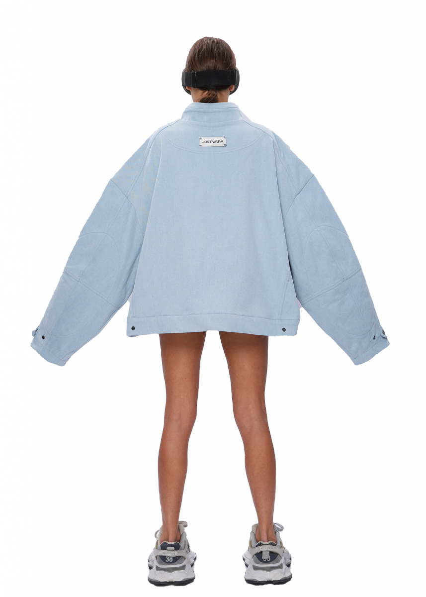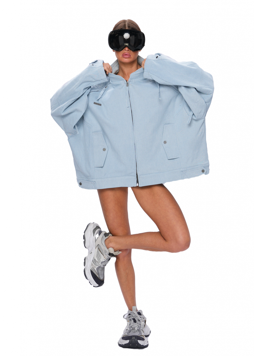 Плотный Denim сохраняет форму изделия. Укороченная длина, высокий ворот и удобные карманы формируют функциональный дизайн модели.