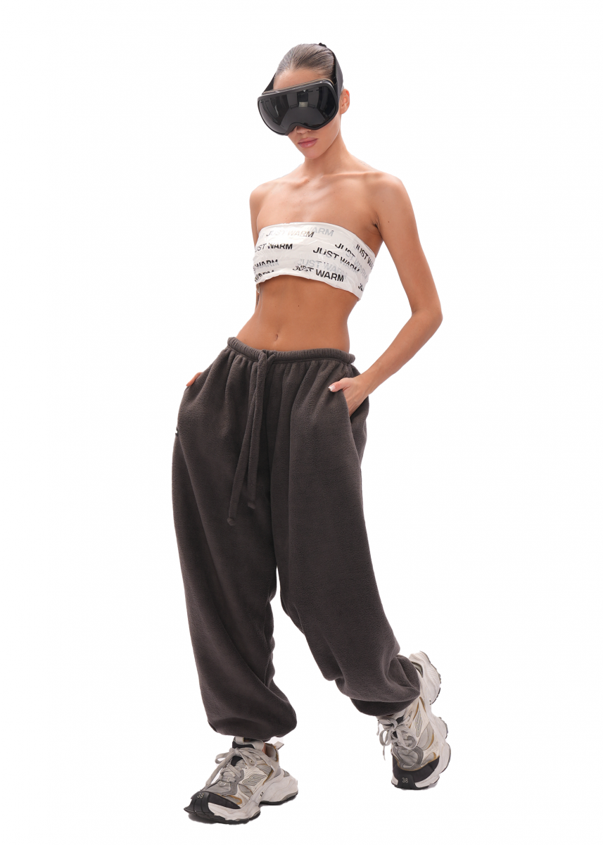 Плюшевые джоггеры FLEECE с объемным силуэтом. Удобный пояс с шнурком и резинки на щиколотках обеспечивают хорошую посадку на любой рост. Боковые карманы добавляют функциональные детали для вашего образа.