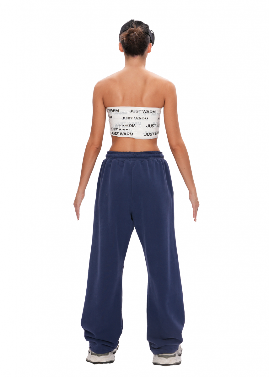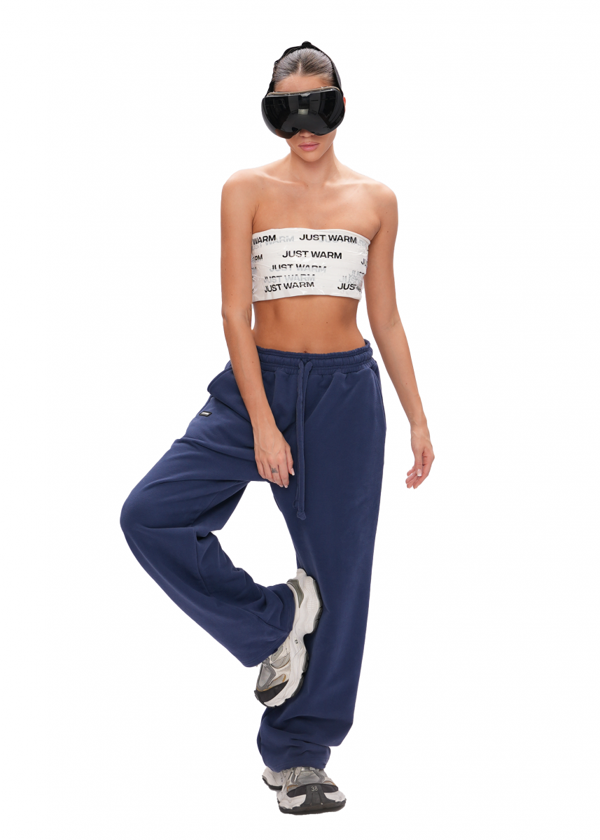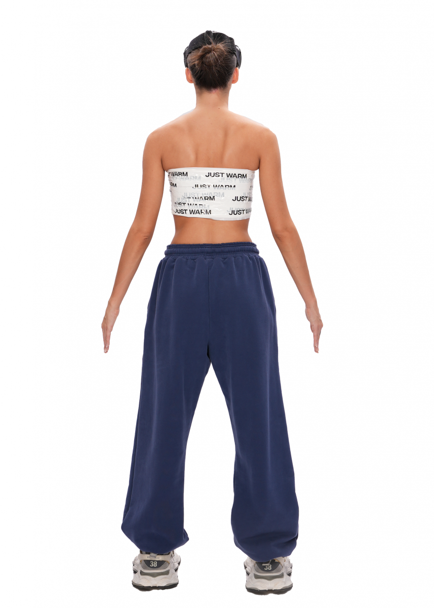 Джоггеры широкого кроя с карманами и резинкой на талии. Внизу на джоггерах расположен фиксатор, что позволяют регулировать длину под нужный рост.