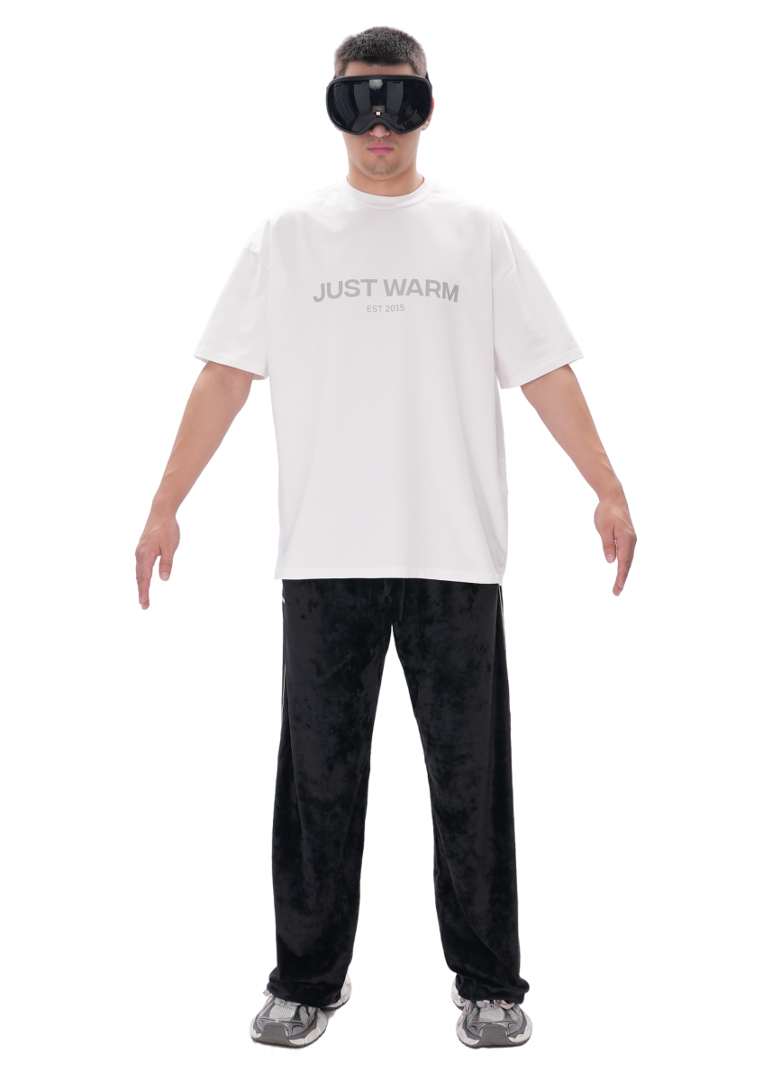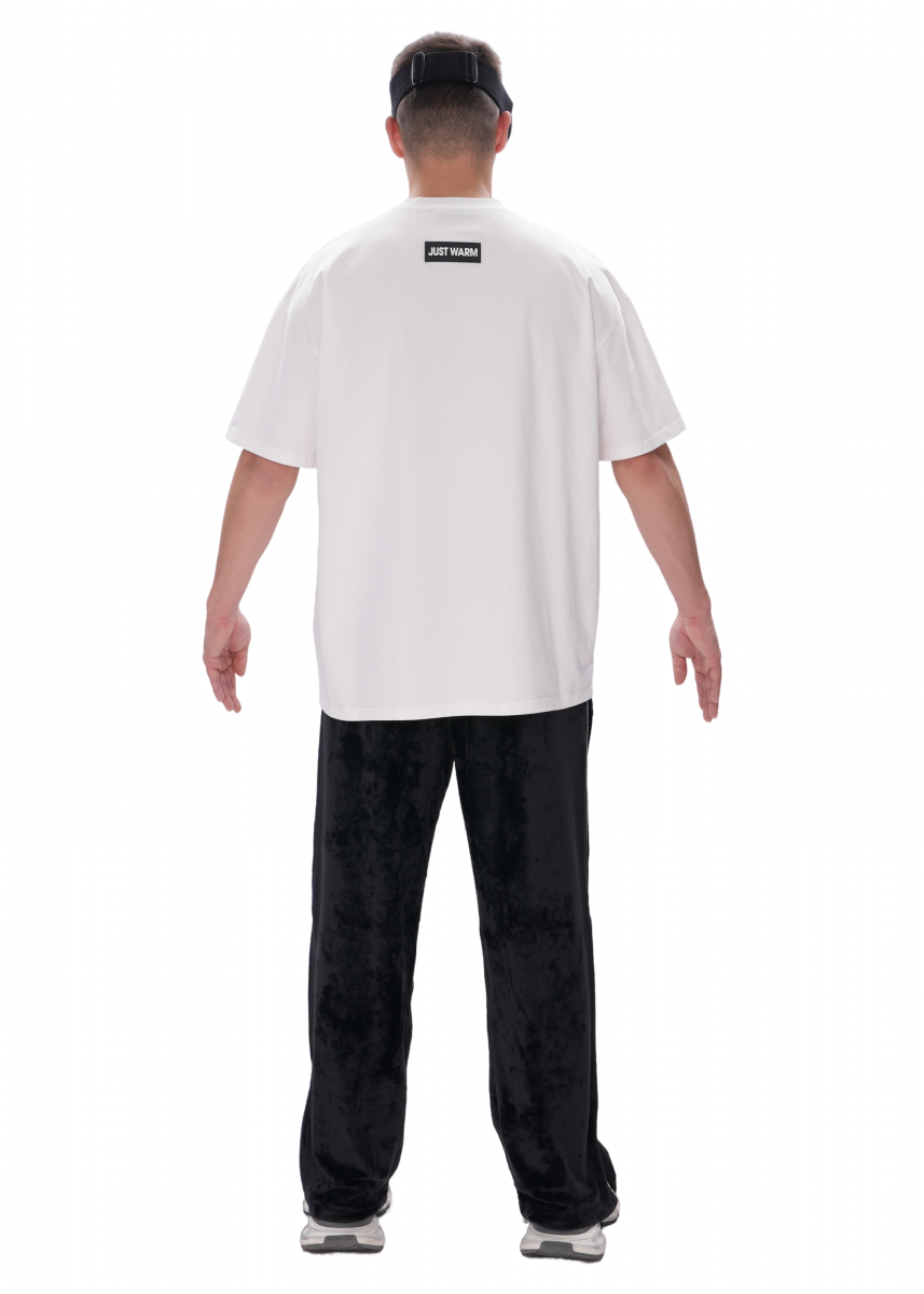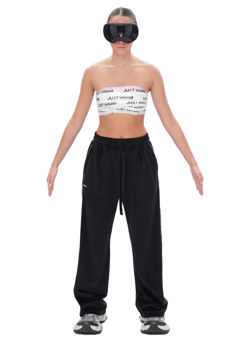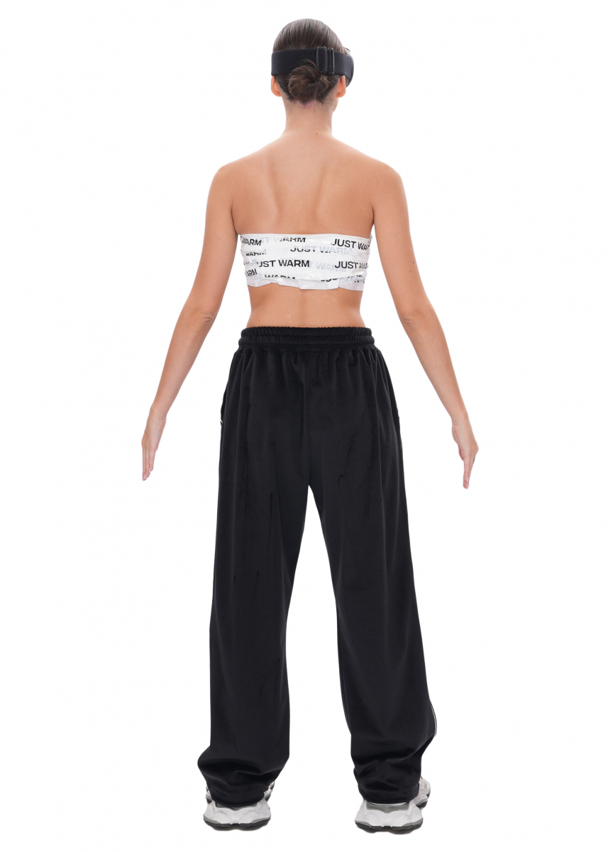 Джоггеры широкого кроя с карманами и резинкой на талии. Внизу на джоггерах расположен фиксатор, что позволяют регулировать длину под нужный рост.