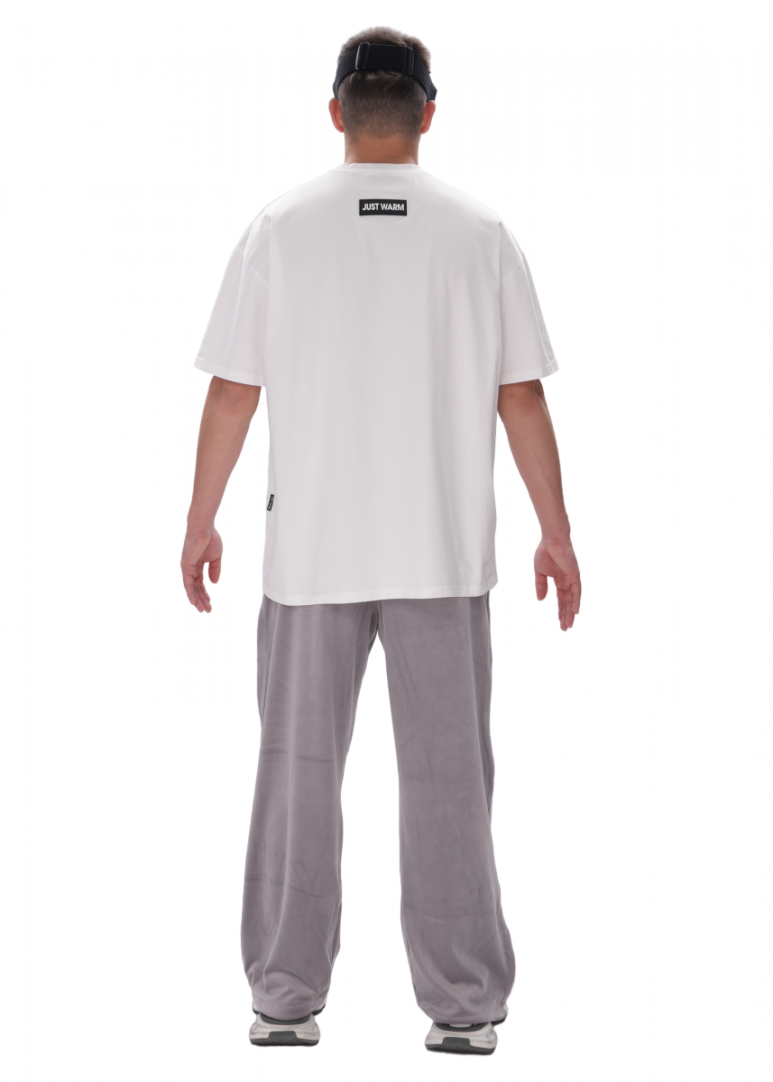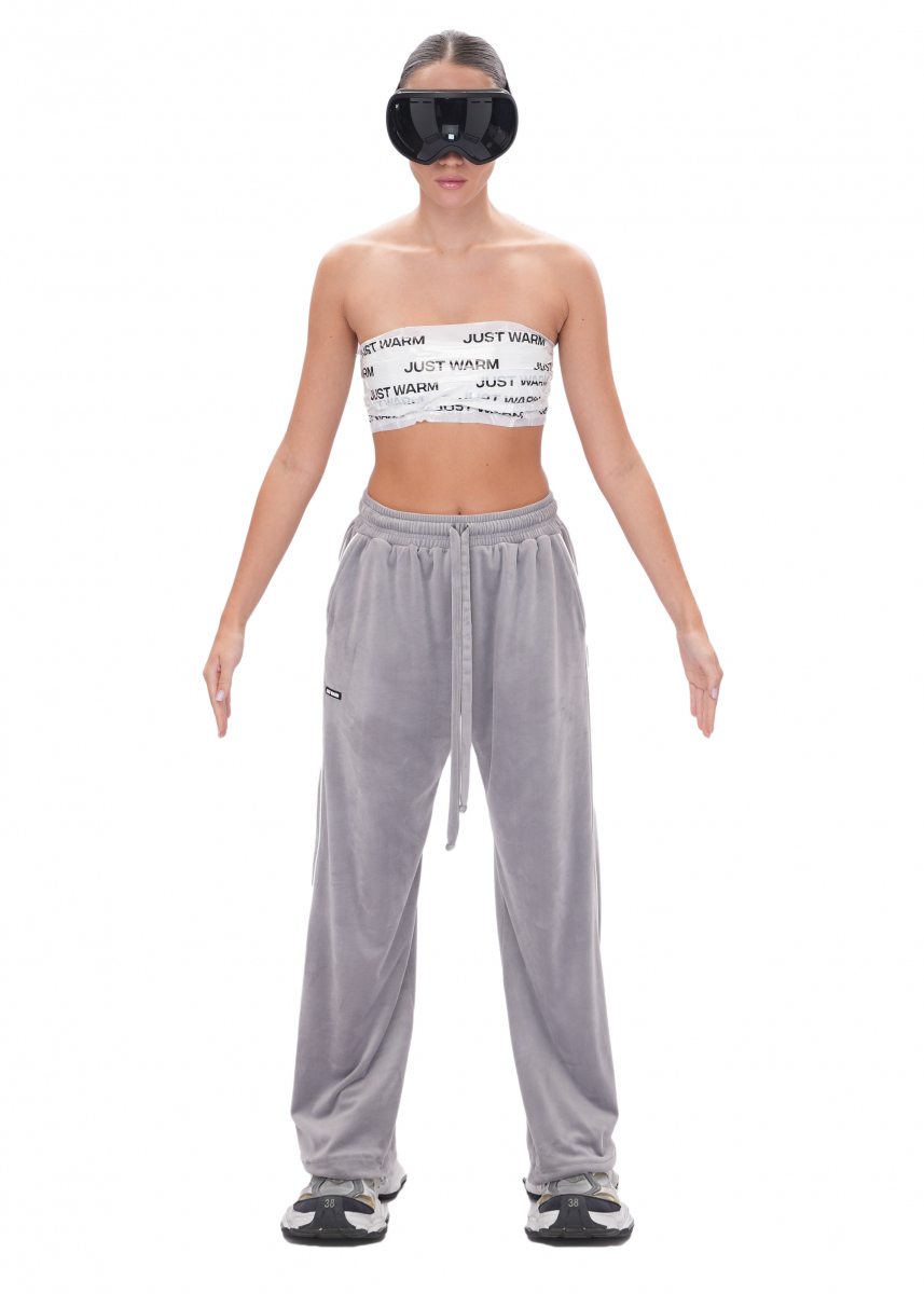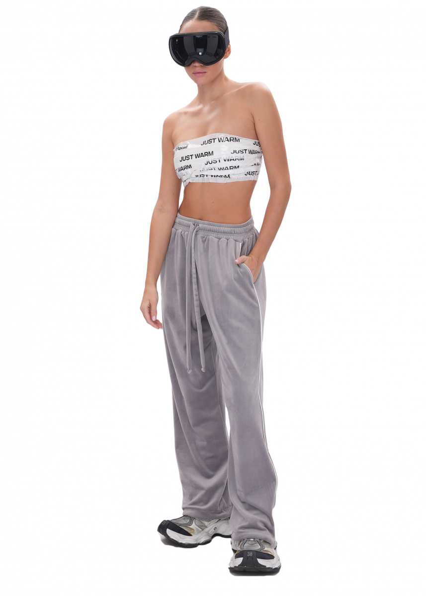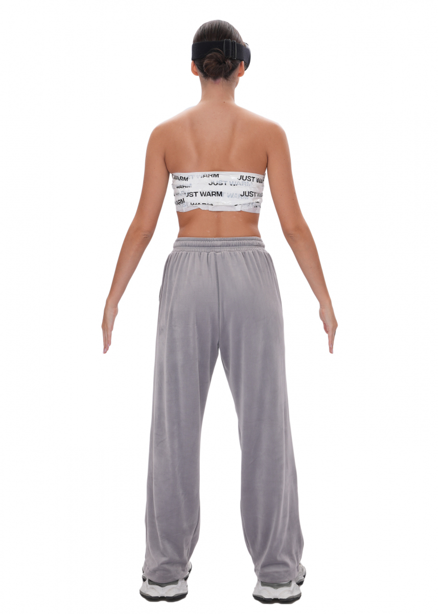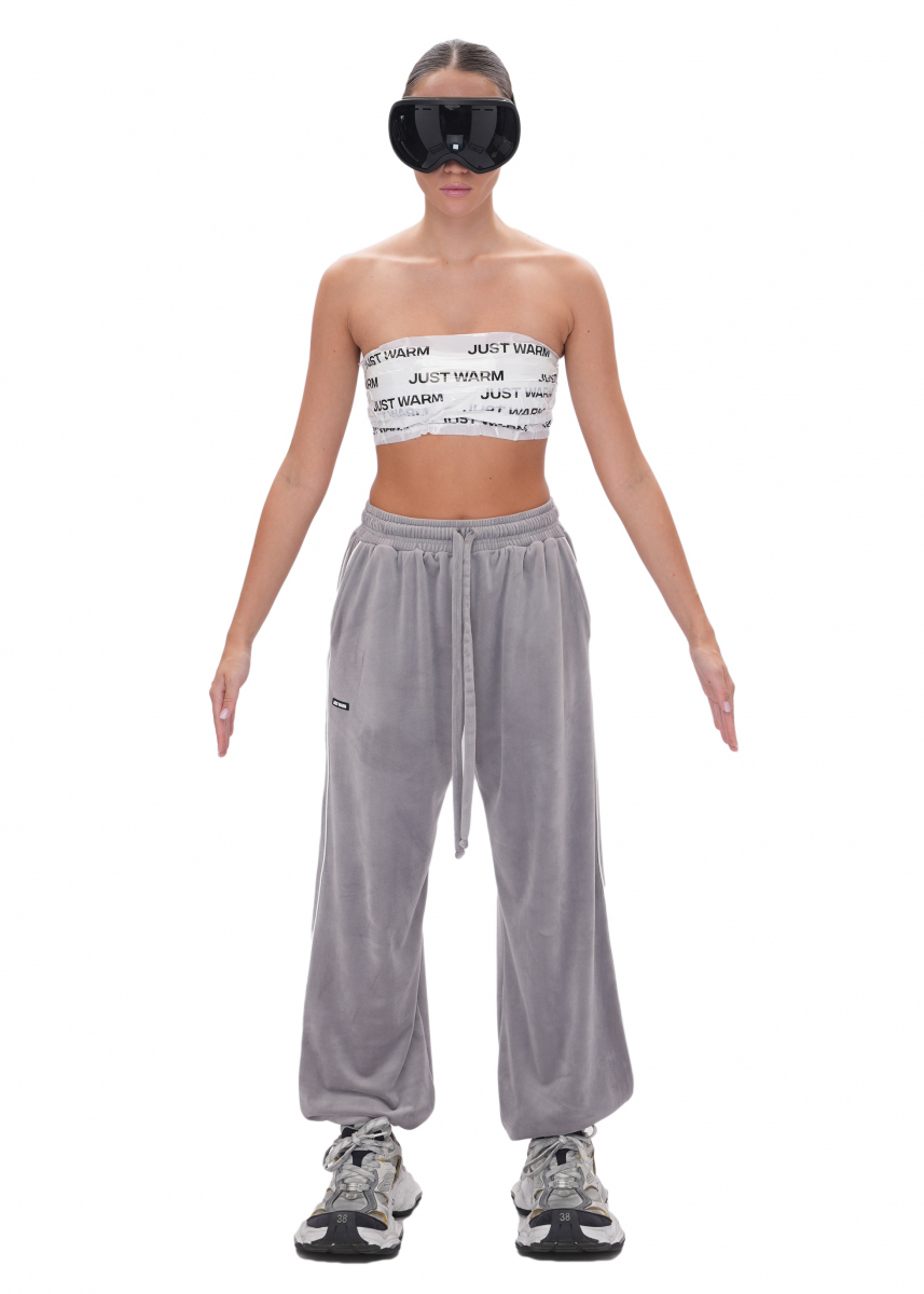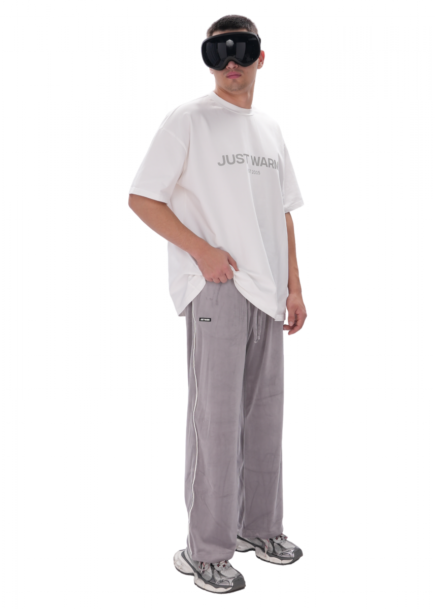 Джоггеры широкого кроя с карманами и резинкой на талии. Внизу на джоггерах расположен фиксатор, что позволяют регулировать длину под нужный рост.
