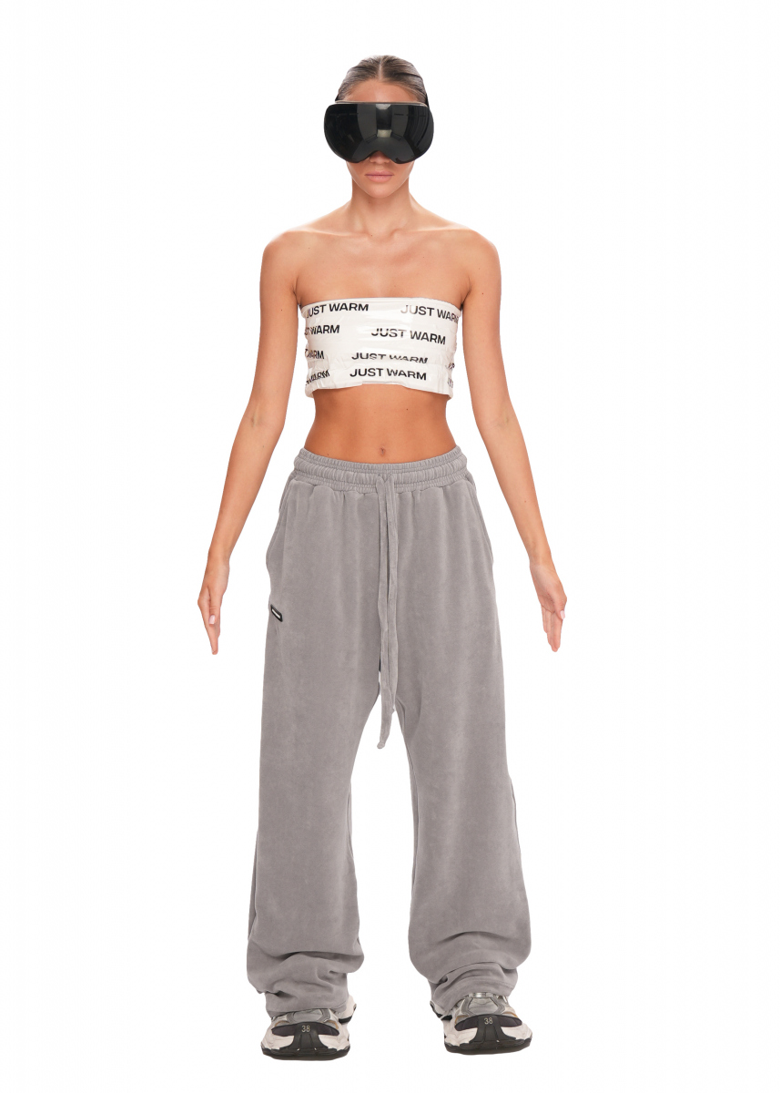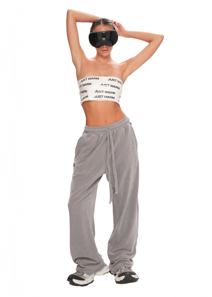 ДЖОГГЕРЫ PEACH Обновленные джоггеры PEACH выполнены из велюра, который приятно ощущается на теле. Изделие широкого кроя с карманами и резинкой с вшитым шнурком на талии. Внизу на джоггерах расположен фиксатор, что позволяют регулировать длину под нужный рост.