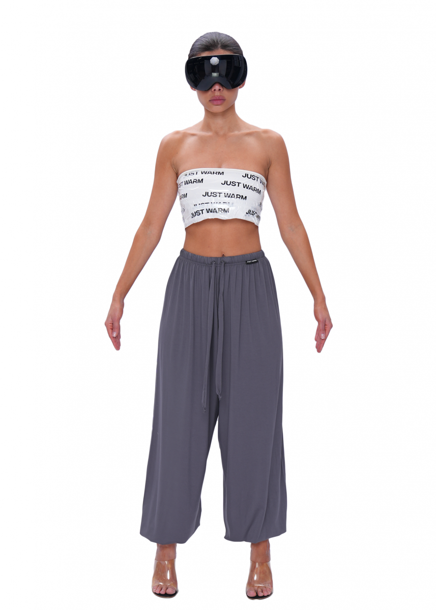 Тонкая эластичная резинка на талии деликатно прилегает к фигуре, а регулируемые шнурки позволяют настроить посадку. Благодаря продуманному силуэту модель гармонично вписывается как в повседневные городские образы, так и в расслабленные домашние и в комплекты для пляжного отдыха.