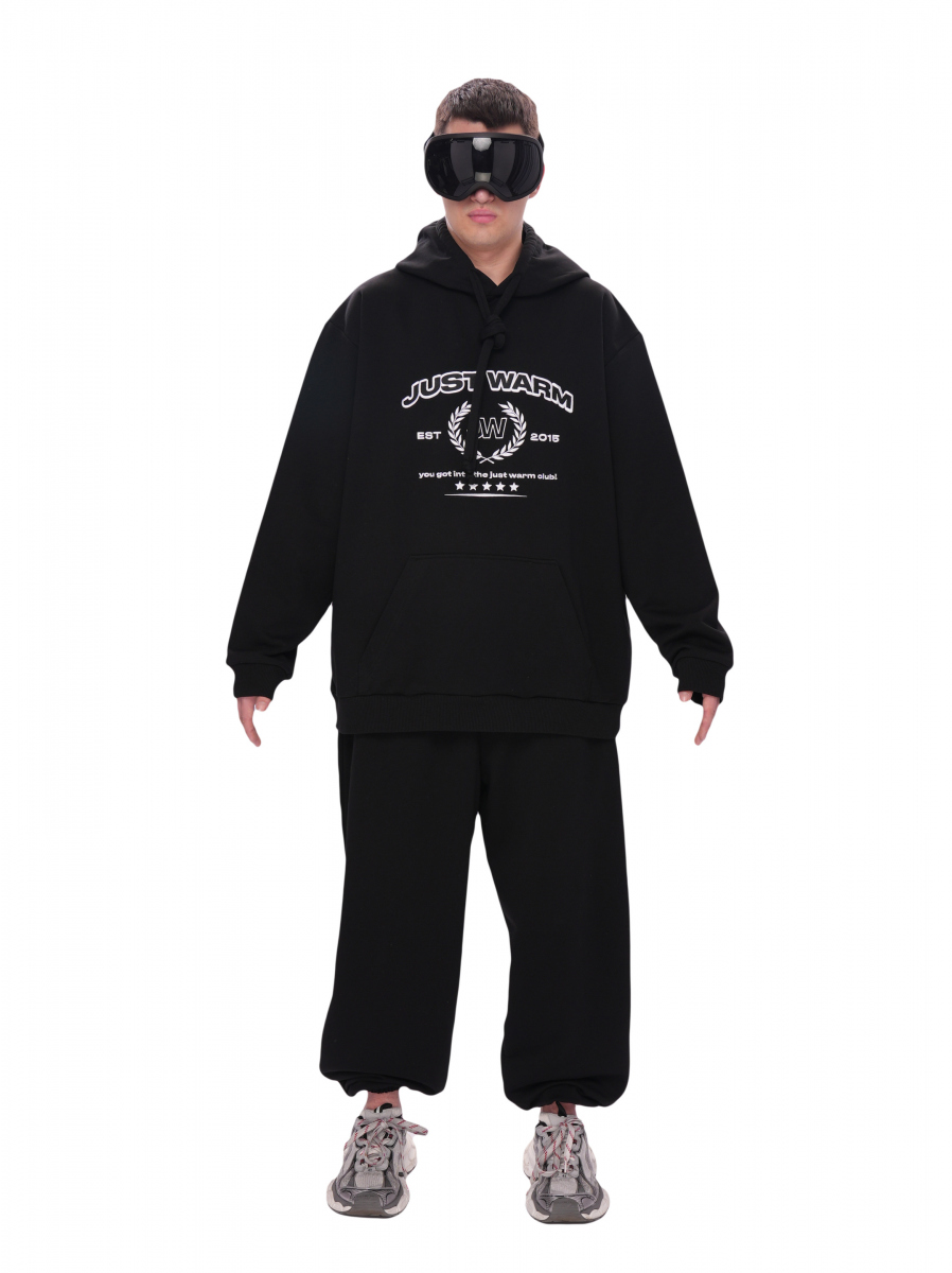 На худи имеется вышивка в виде обновленного фирменного логотипа с добавлением различных цветов, а также закругленная бирка на задней стороне изделия.
