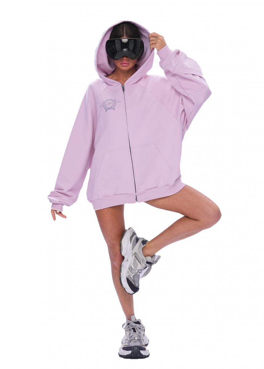 Худи на молнии выполнено из премиального футера и имеет функциональные карманы. На лицевой стороне изделия нанесена стойкая печать в виде брендированного принта.