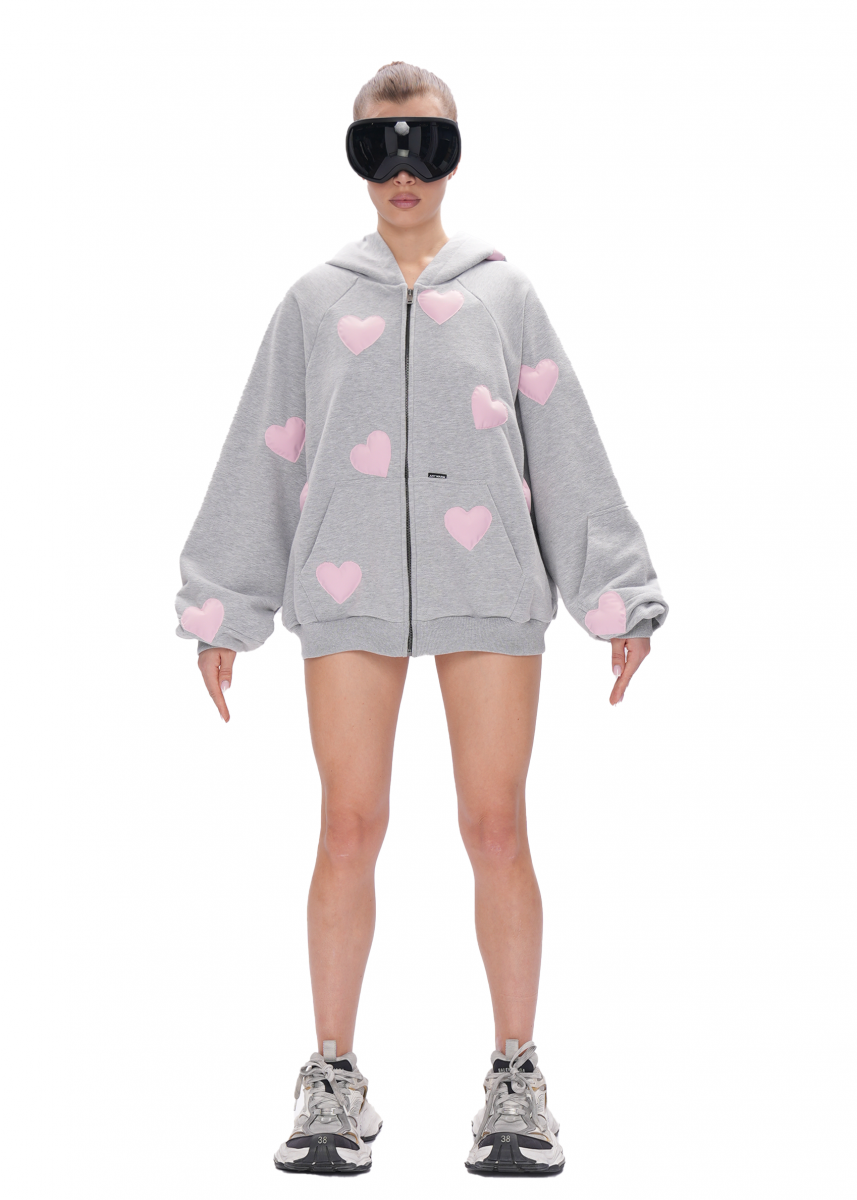 Худи ZIP с сердечками - Худи на молнии выполнено из премиального футера и имеет функциональные карманы.