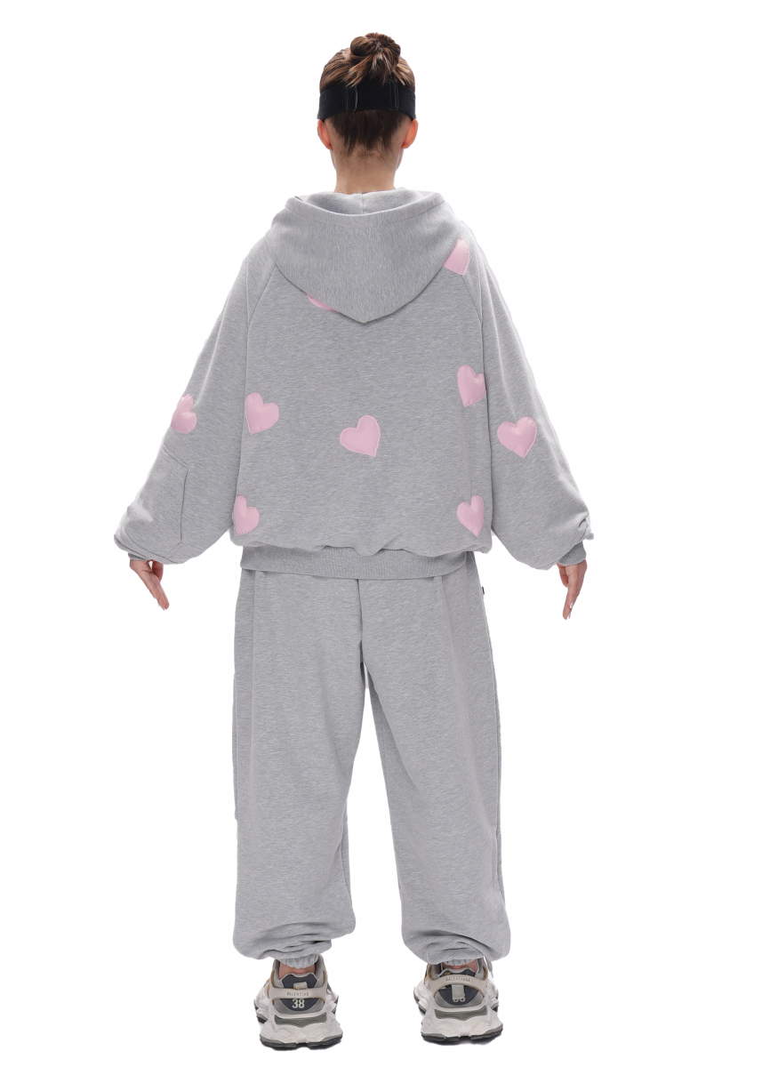 На худи расположены яркие объемные сердечки создающие выразительный акцент.