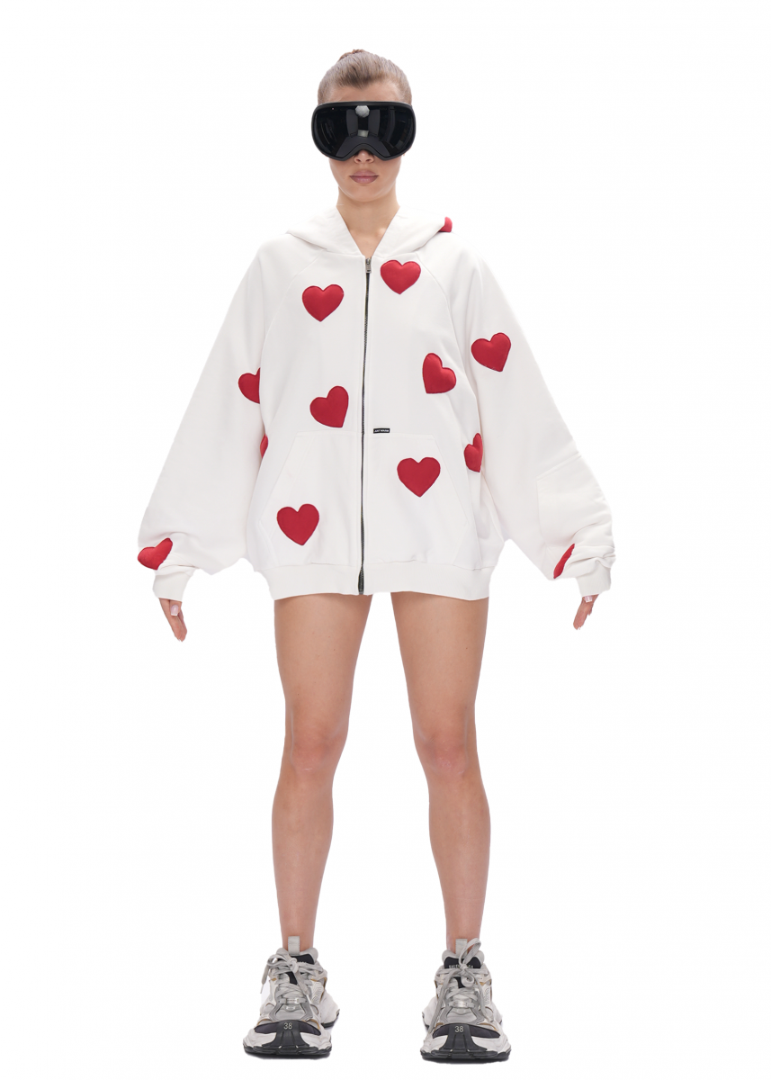 Худи ZIP с сердечками - Худи на молнии выполнено из премиального футера и имеет функциональные карманы.