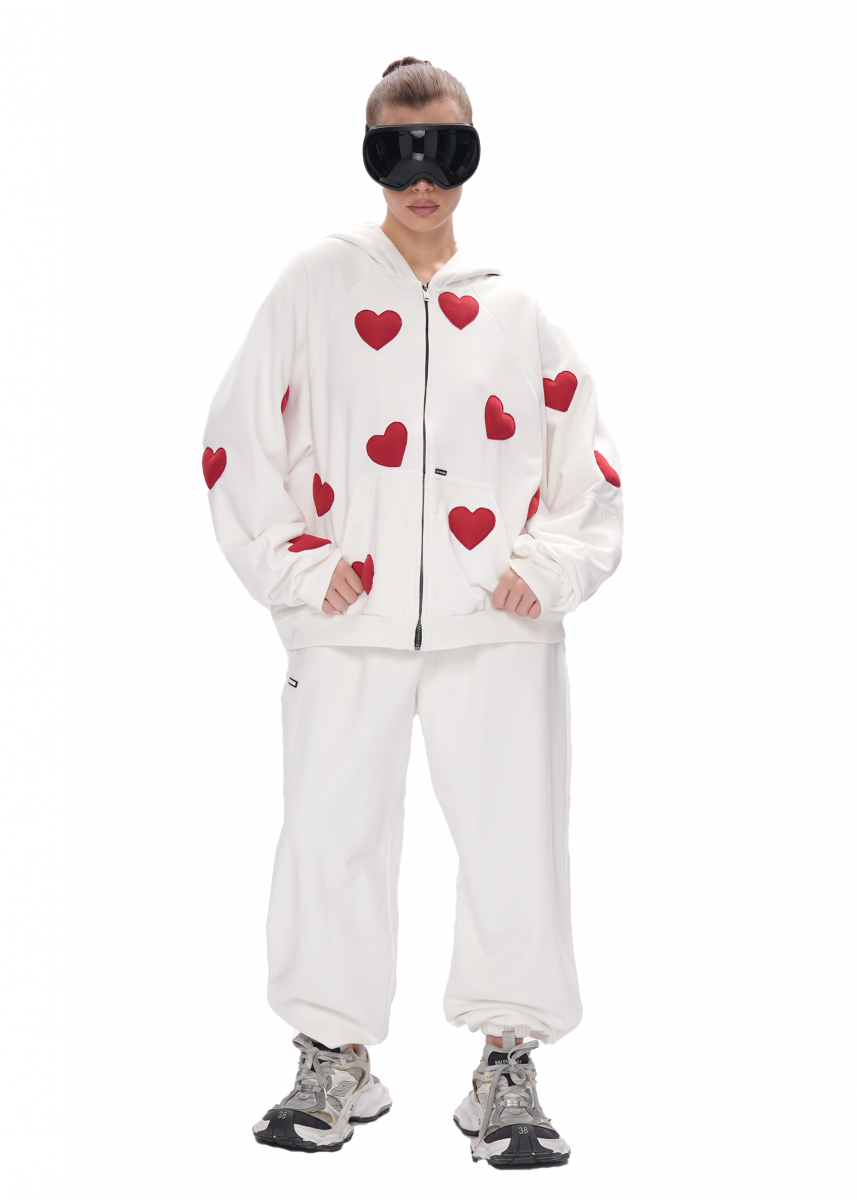 Худи ZIP с сердечками - milk