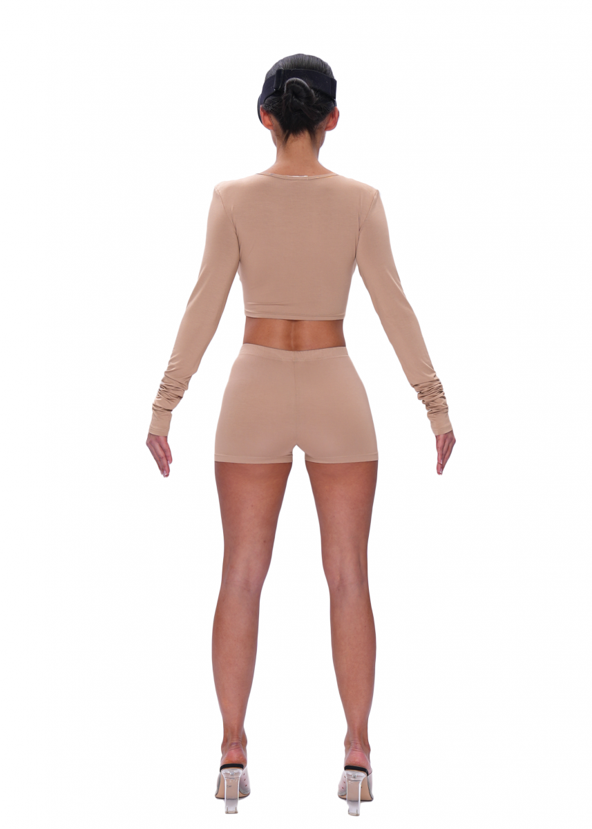 Укороченный лонгслив из премиальной вискозы с мягкой и гладкой фактурой. Комфортно прилегает к телу, подчеркивает линию плеч и талии. Застежка на пуговицах позволяет менять глубину выреза. Длинные рукава и аккуратные швы обеспечивают удобство в носке.