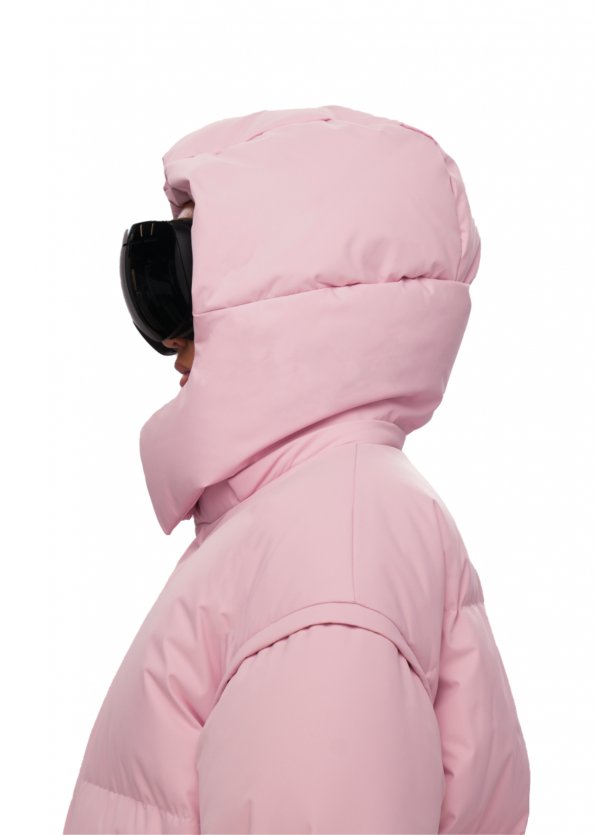 Встроенные прочные металлические фиксаторы на капюшоне и внизу изделия помогают защищаться от ветра. Вы также можете изменить силуэт изделия с помощью удобных фиксаторов и съемных рукавов, трансформируя куртку в теплый жилет.