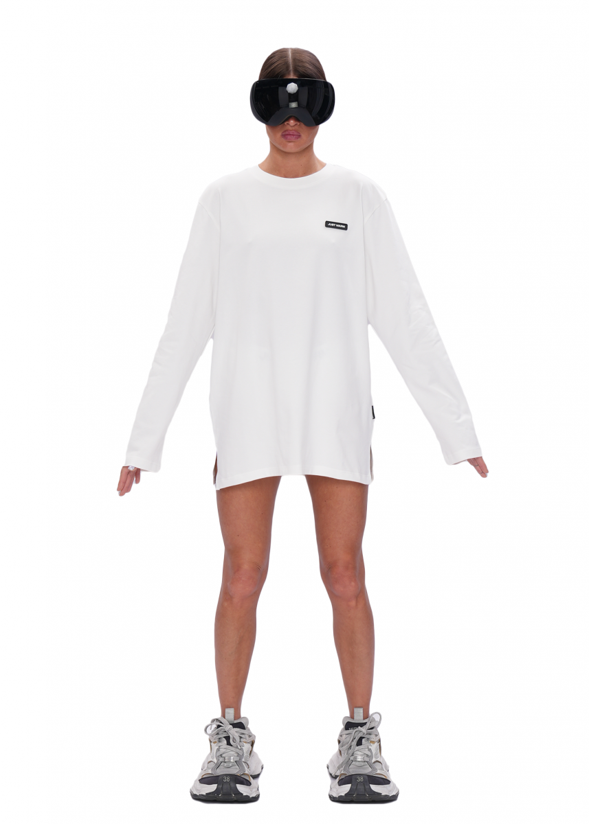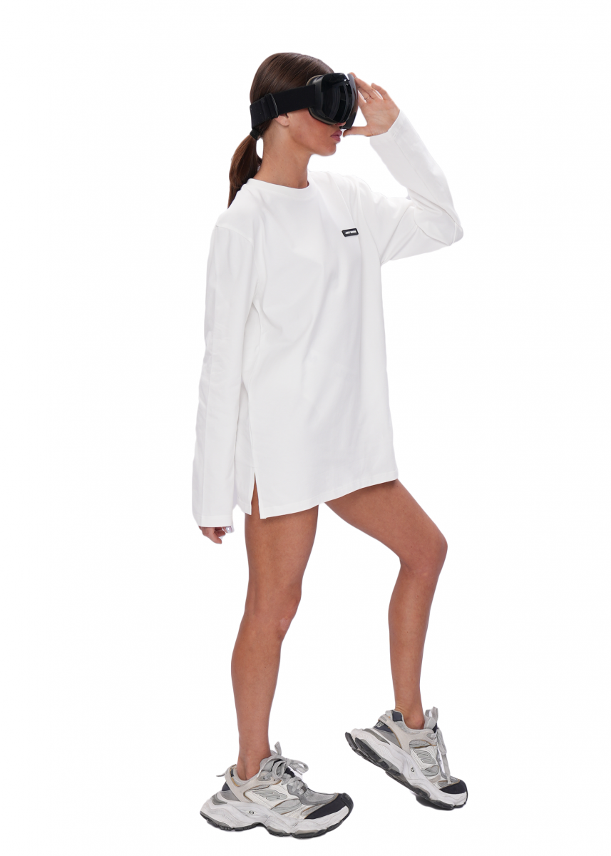 Нижний слой - лонгслив имеет комфортную длину, дополнен аккуратным разрезом по нижнему боковому краю, который обеспечивает свободу движения и завершает силуэт.