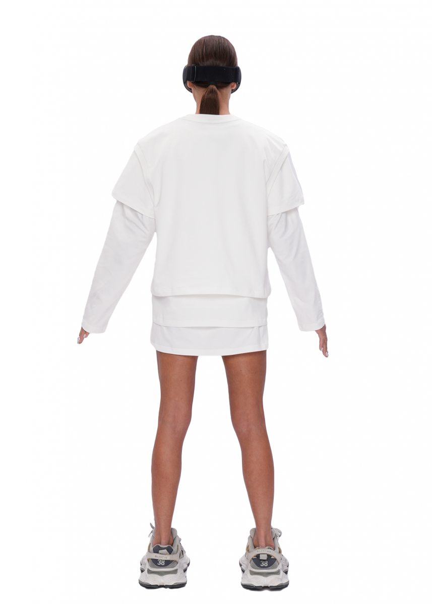 Многофункциональная модель, объединяющая лонгслив, футболку и топ в одном комплекте. Изделия продуманы как единая система, их можно носить вместе или по отдельности, позволяя собирать образы в зависимости от задачи и сезона.