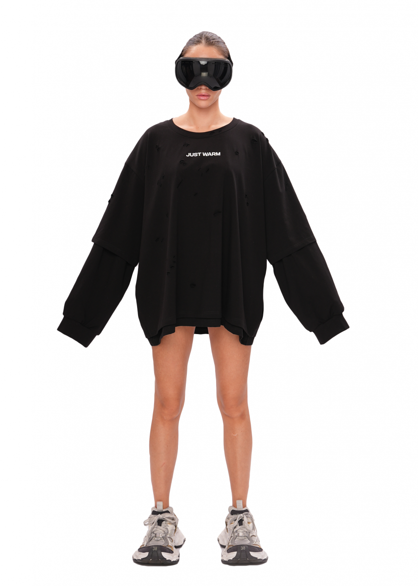 Двухслойный лонгслив OVERSIZE силуэта выполненный из премиальной хлопковой ткани.