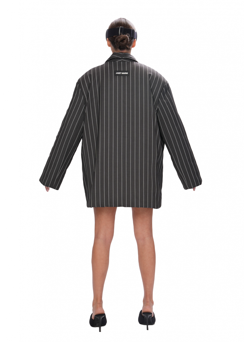 Утепленный пиджак выполнен по лекалам нашего популярного пиджака LEVEL. Мягкий утеплитель обеспечивает комфорт в прохладную погоду, а строгий принт в тонкую полоску добавляет образу элегантности.