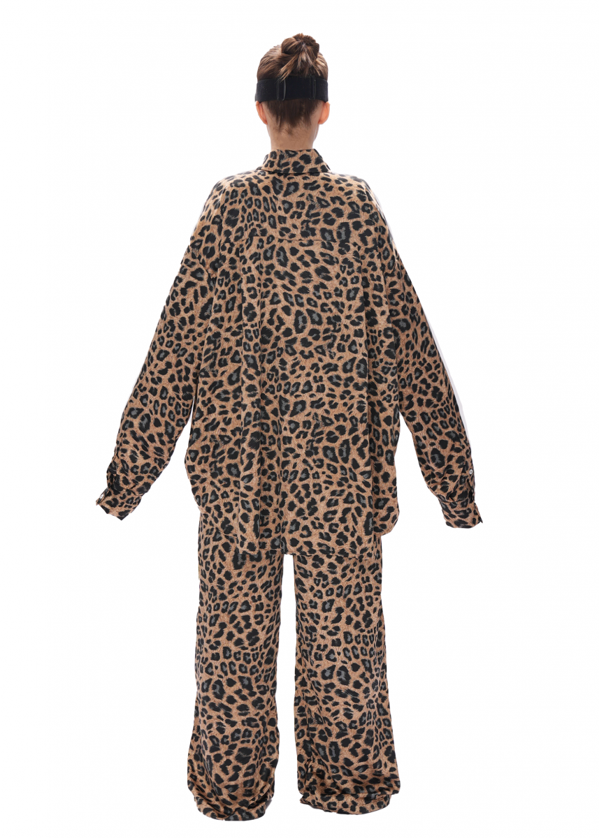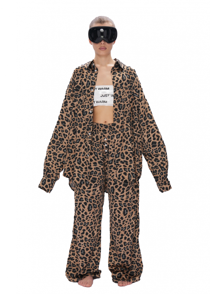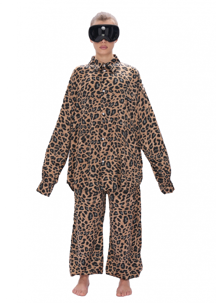 Пижама LUNA в трендовом леопардовом принте - выполнена из лёгкой струящейся атласной ткани и представлена в комплекте из рубашки и джоггеров.