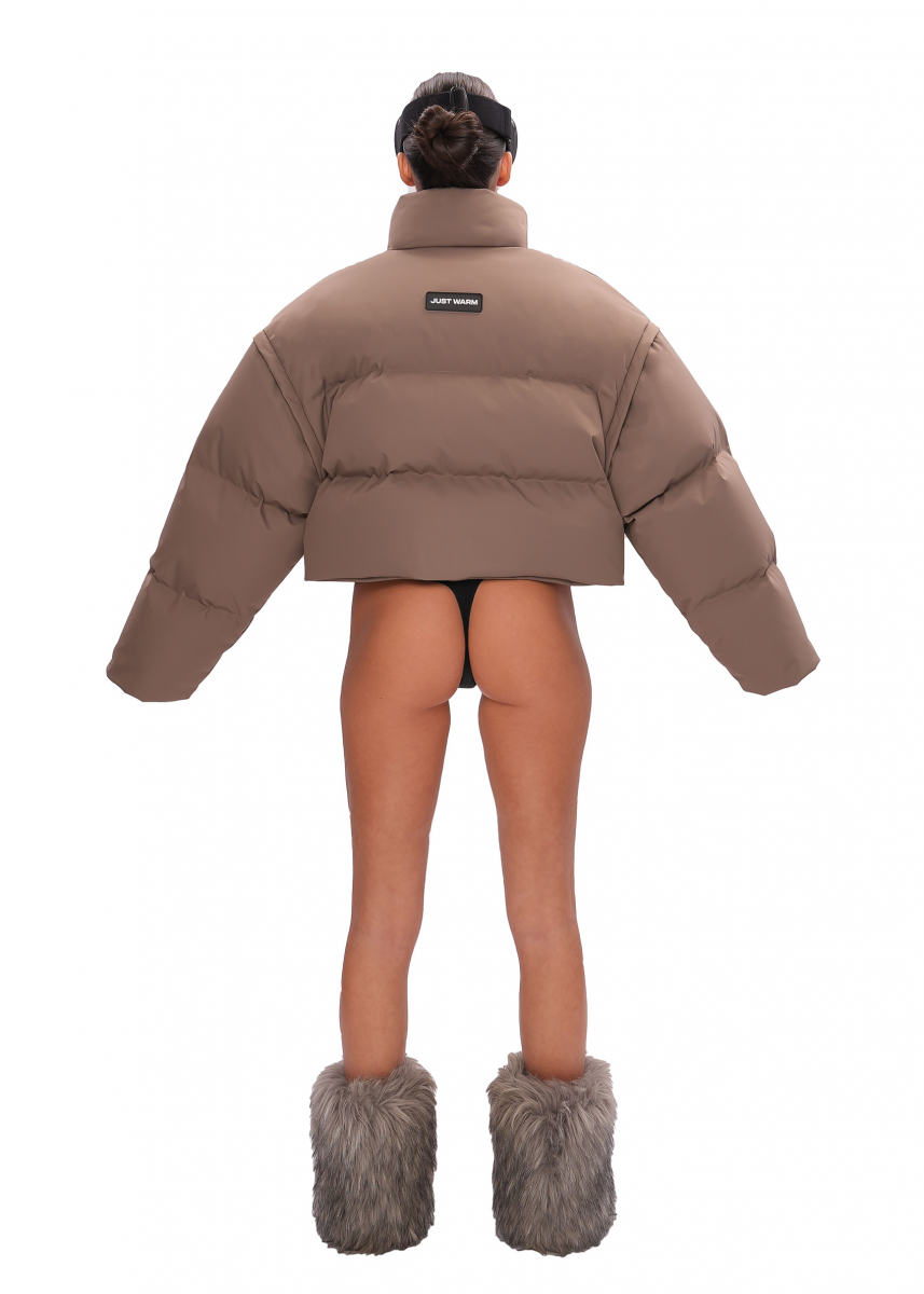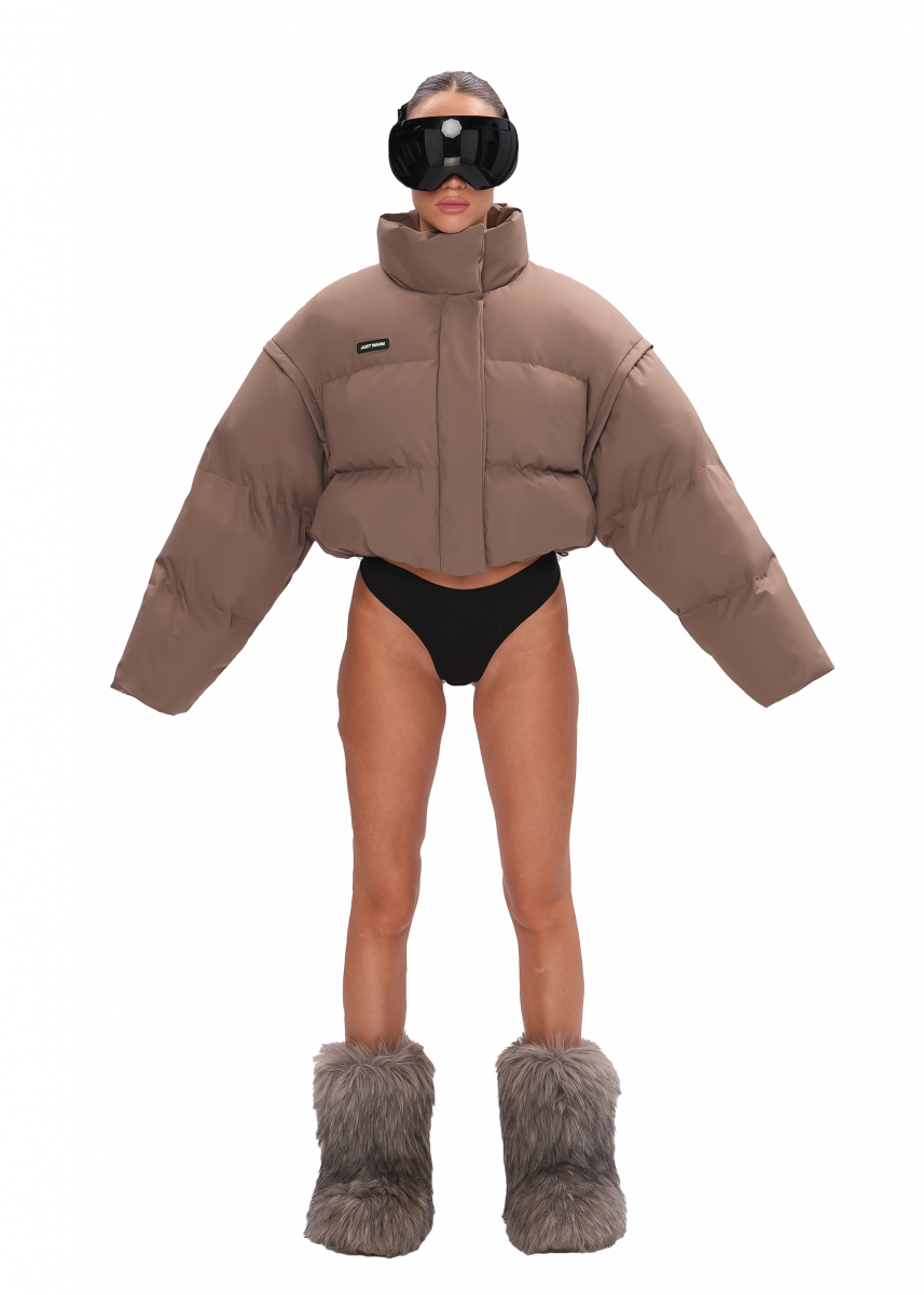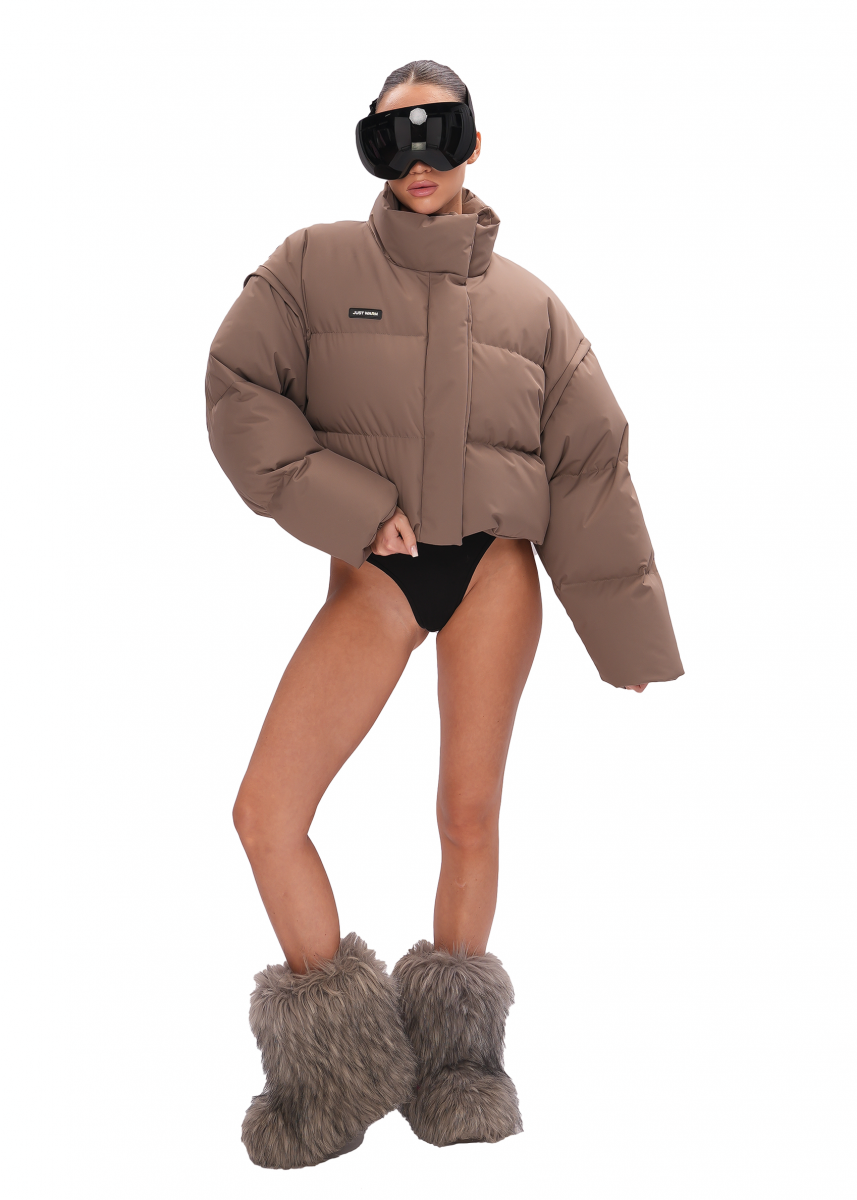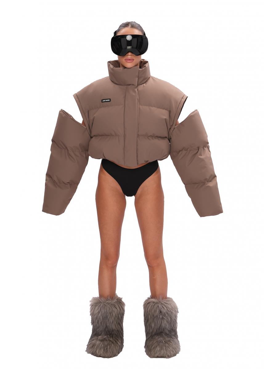 Укороченный пуховик CLOUD имеет съемные рукава, а также прочные металлические фиксаторы для защиты от ветра и поддержания тепла.
