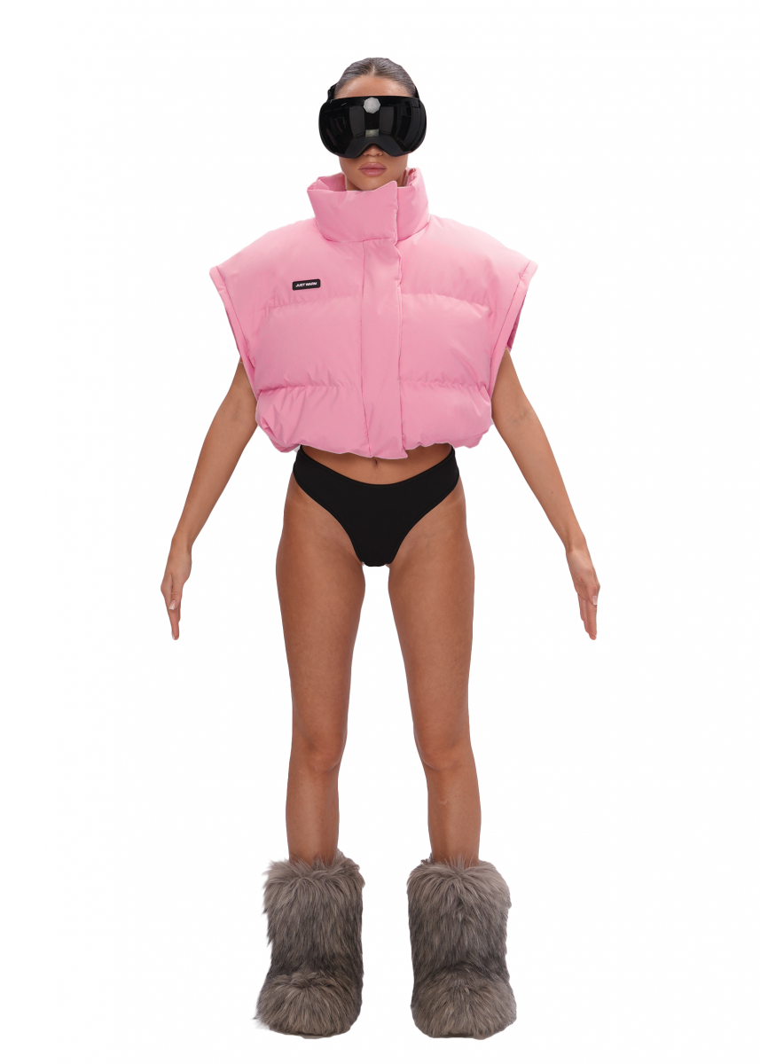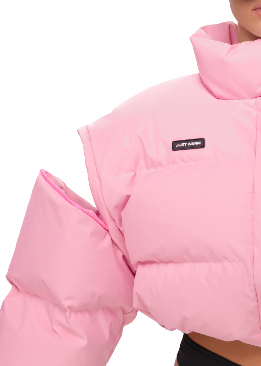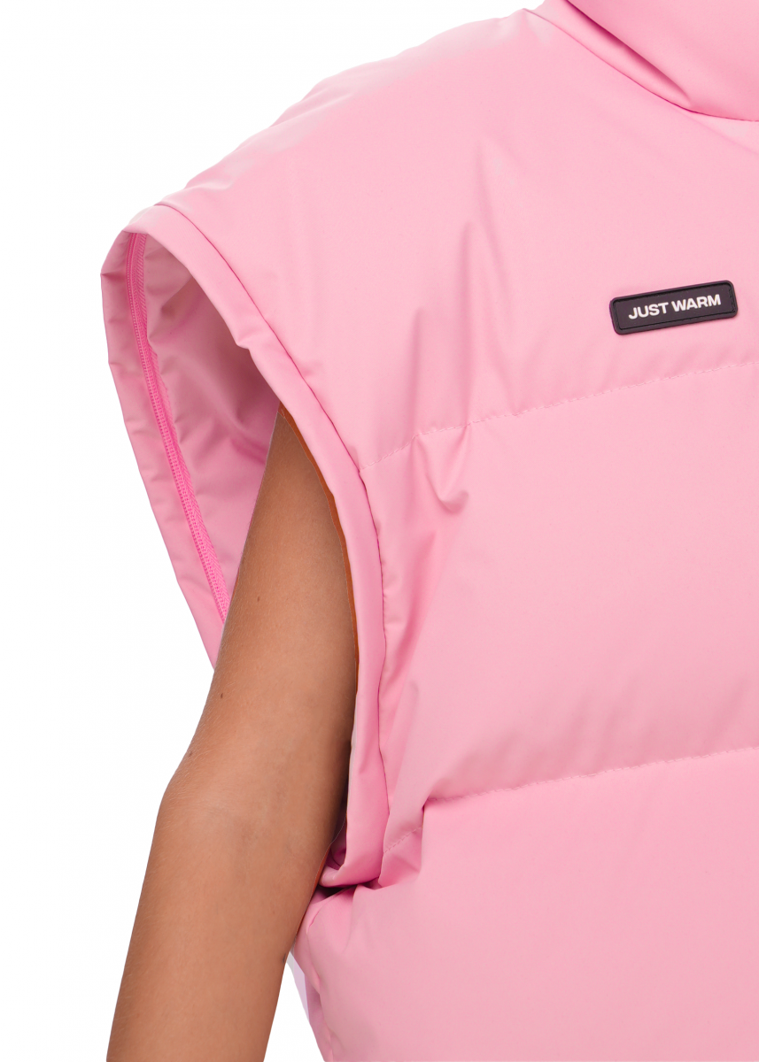 Благодаря съемным карманам на молнии, вы можете легко менять силуэт изделия, трансформируя мини-пуховик в теплый жилет.