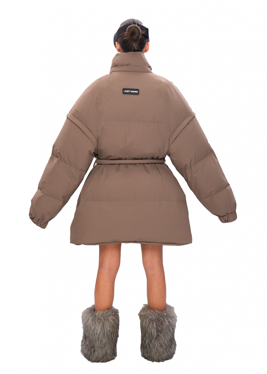 Дополнительно имеется пояс в районе талии, за счёт него можно также изменить силуэт.