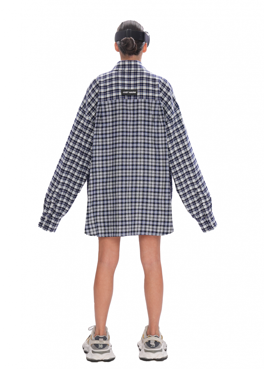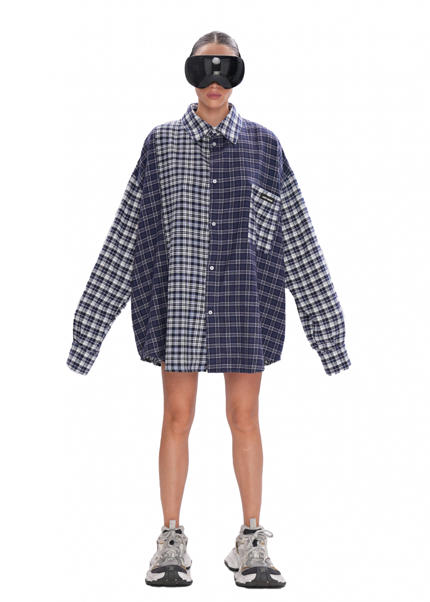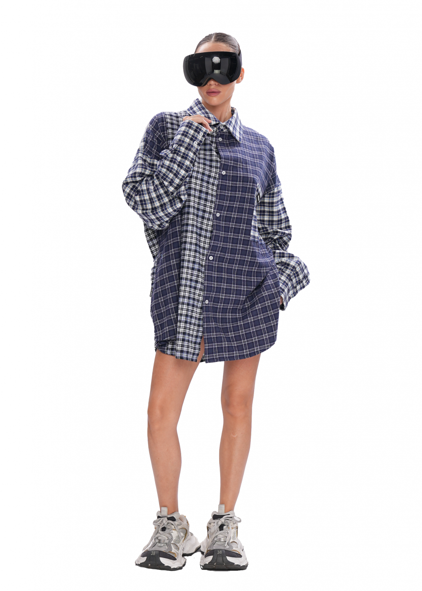 Рубашка свободного кроя насыщенного синего цвета имеет 3 вида клетки, отлично подойдет для повседневных городских образов и для отдыха за счет легкого материала.