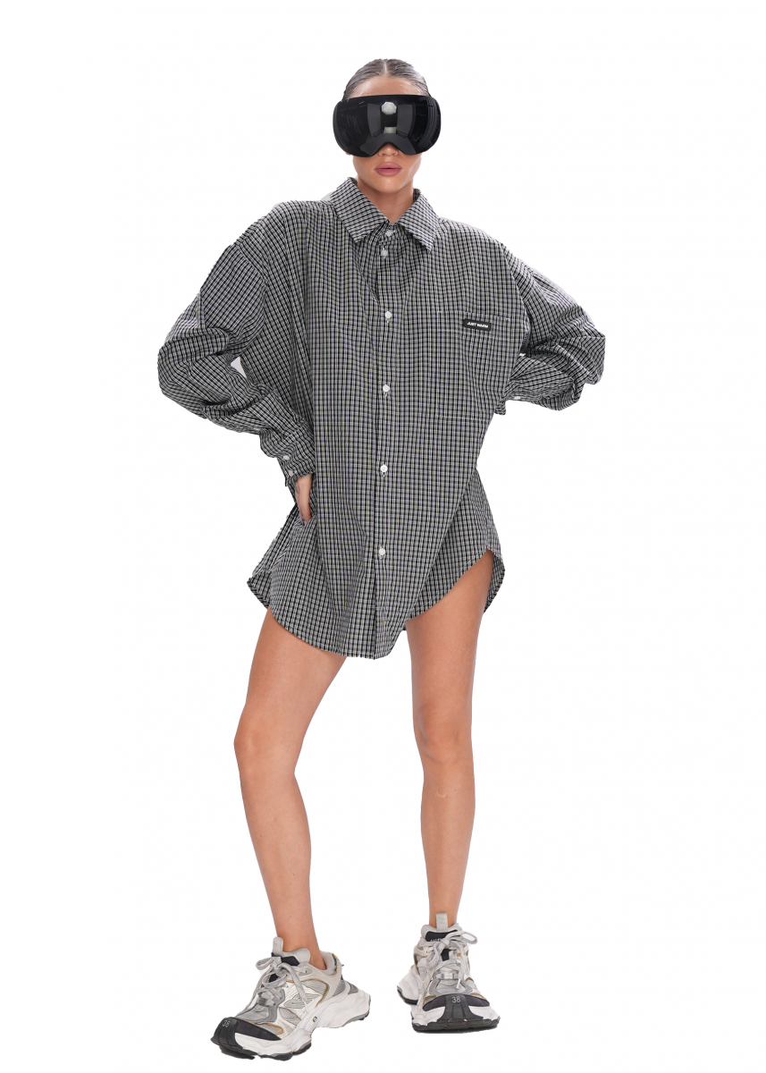 Рубашка свободного кроя в мелкую клетку отлично подойдет для повседневных городских образов и для отдыха за счет легкого материала.