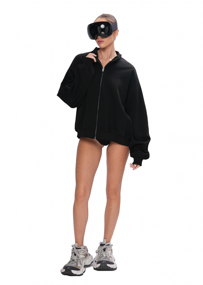 Свитшот с премиальным металлическим замком выполнен из мягкого футера, который обеспечивает комфорт во время носки. Изделие имеет объемные рукава с манжетами, что придает ему свободный силуэт и не сковывает движения. Идеальный вариант для повседневных образов в холодное время года. Изделие выполнено в едином размере OVERSIZE, имеет средний объем, подходит мужчинам и женщинам.