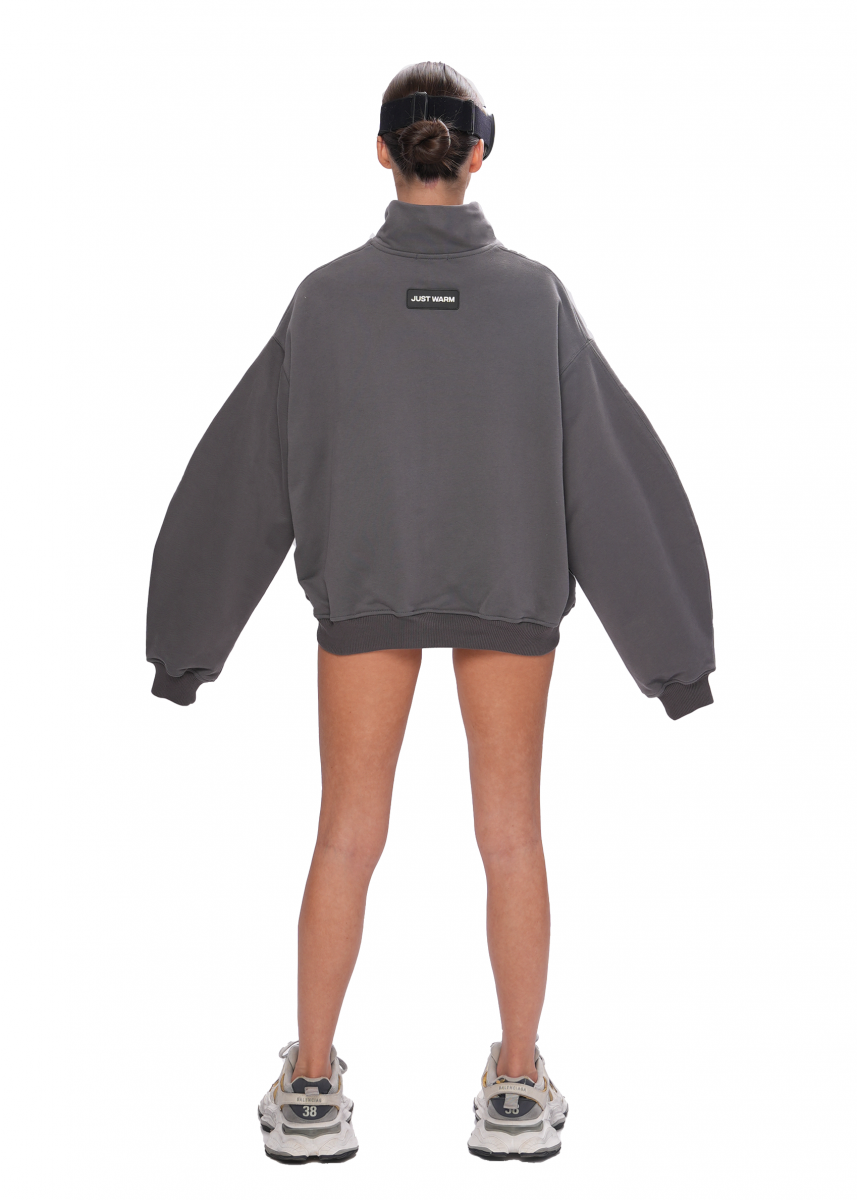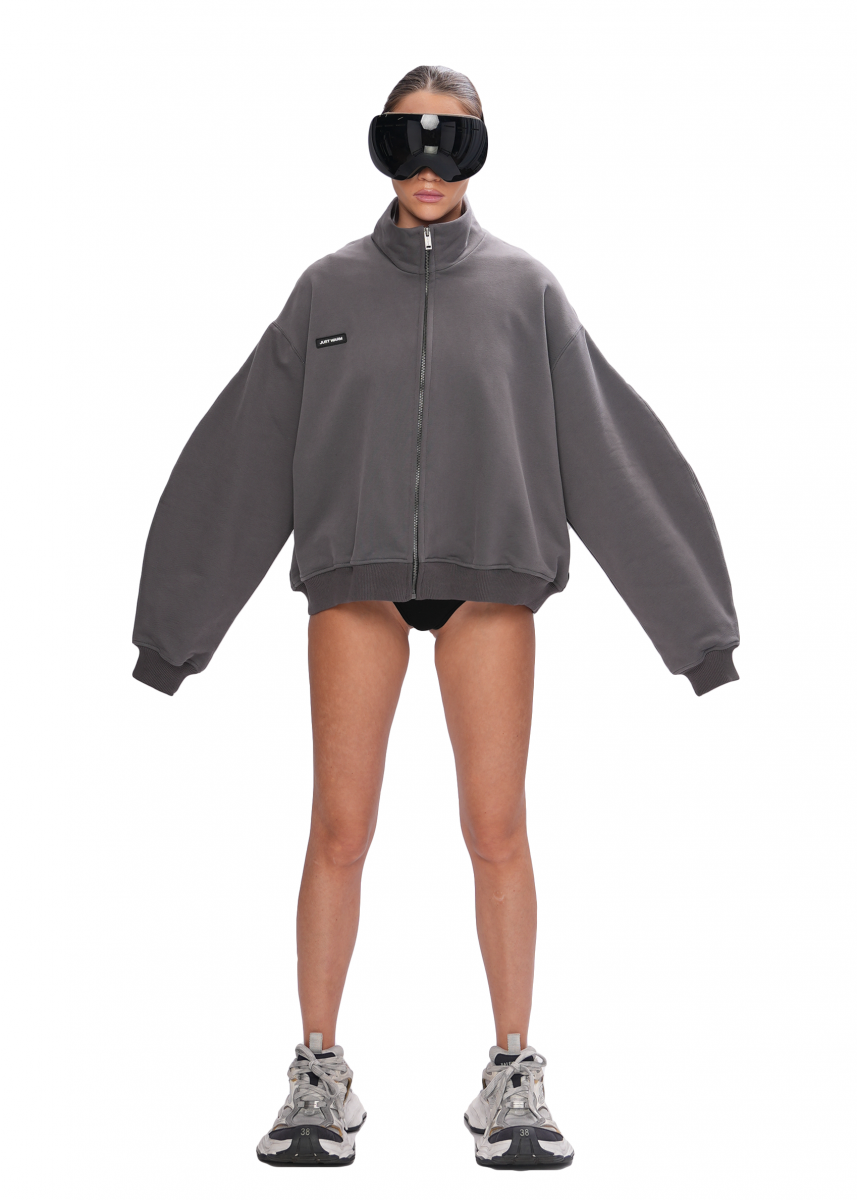 Свитшот с премиальным металлическим замком выполнен из мягкого футера, который обеспечивает комфорт во время носки. Изделие имеет объемные рукава с манжетами, что придает ему свободный силуэт и не сковывает движения. Идеальный вариант для повседневных образов в холодное время года. Изделие выполнено в едином размере OVERSIZE, имеет средний объем, подходит мужчинам и женщинам.
