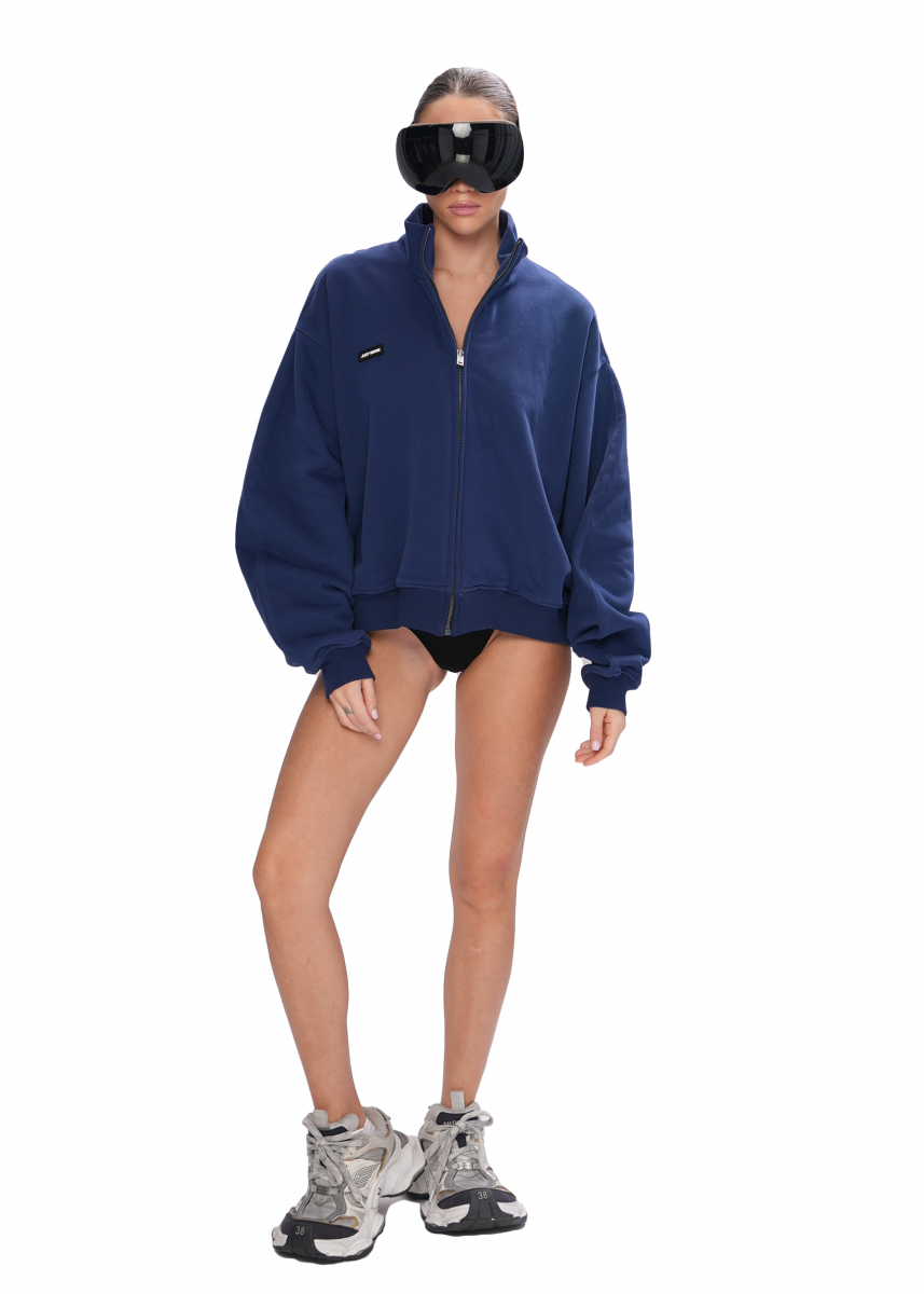 Свитшот с премиальным металлическим замком выполнен из мягкого футера, который обеспечивает комфорт во время носки. Изделие имеет объемные рукава с манжетами, что придает ему свободный силуэт и не сковывает движения. Идеальный вариант для повседневных образов в холодное время года. Изделие выполнено в едином размере OVERSIZE, имеет средний объем, подходит мужчинам и женщинам.