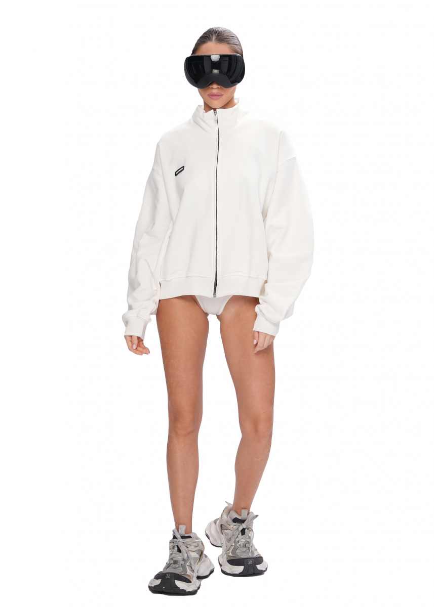 Свитшот с премиальным металлическим замком выполнен из мягкого футера, который обеспечивает комфорт во время носки. Изделие имеет объемные рукава с манжетами, что придает ему свободный силуэт и не сковывает движения. Идеальный вариант для повседневных образов в холодное время года. Изделие выполнено в едином размере OVERSIZE, имеет средний объем, подходит мужчинам и женщинам.