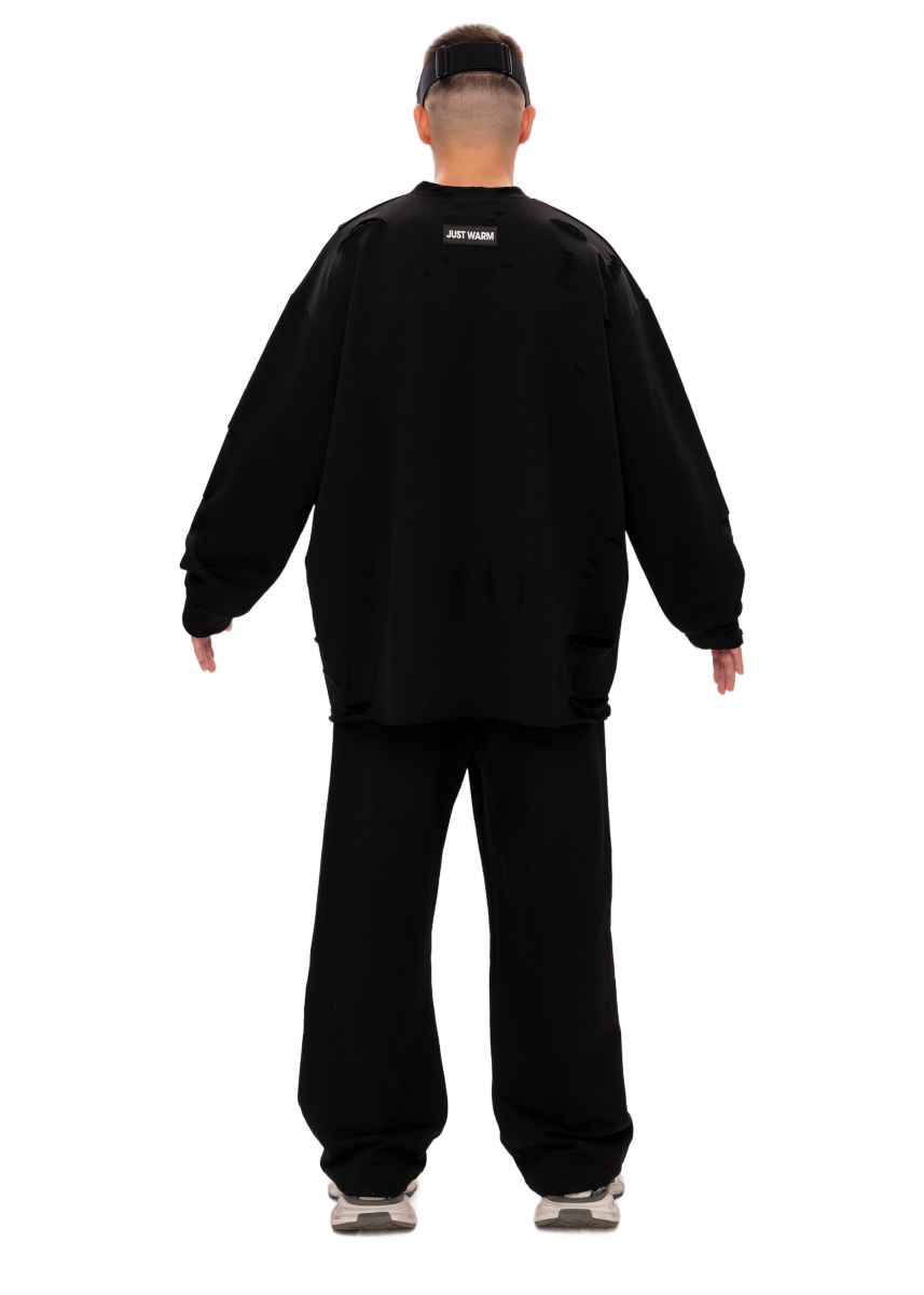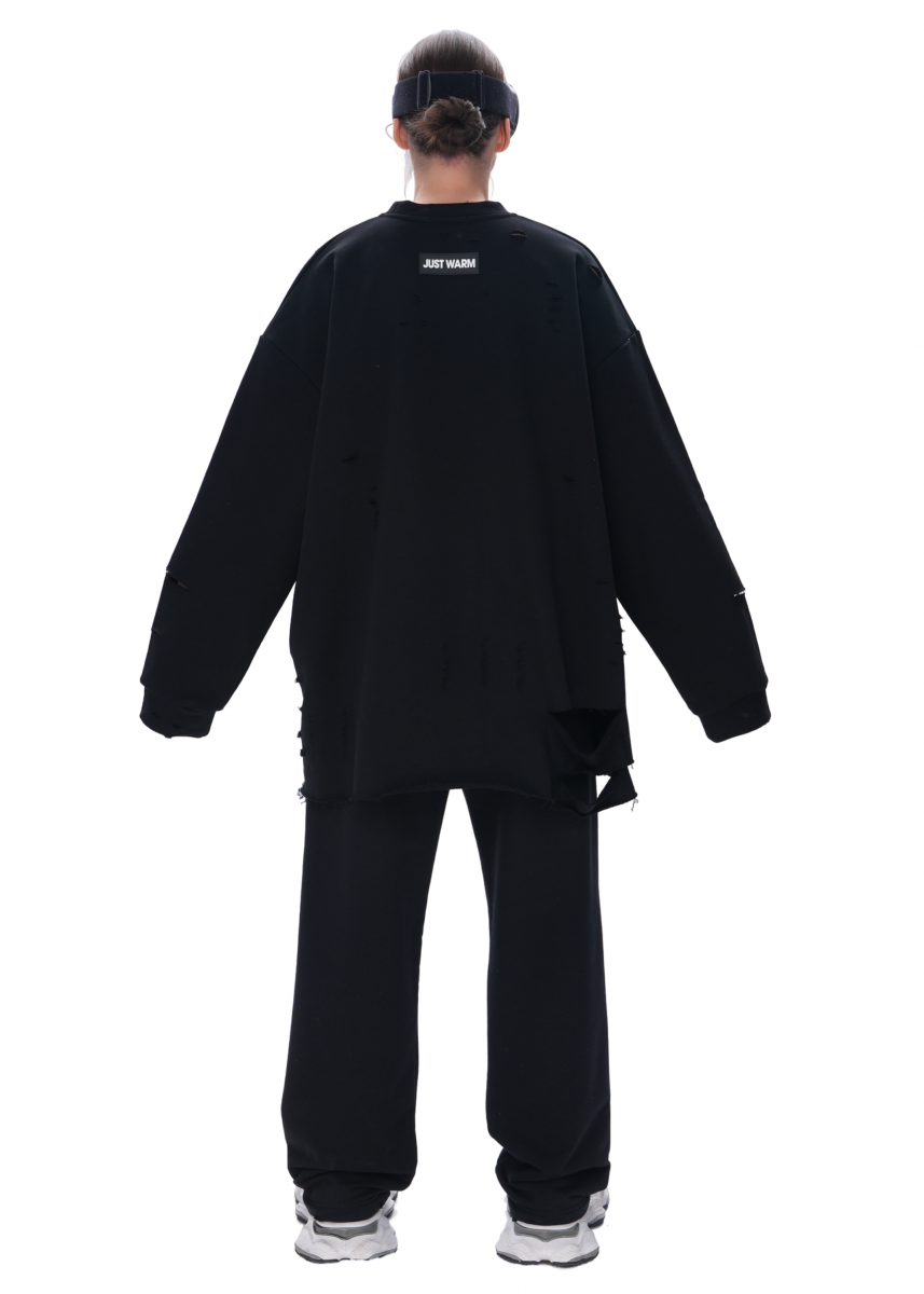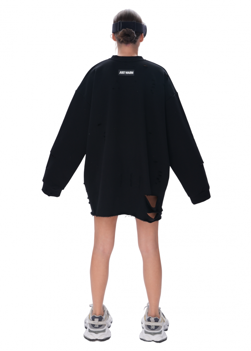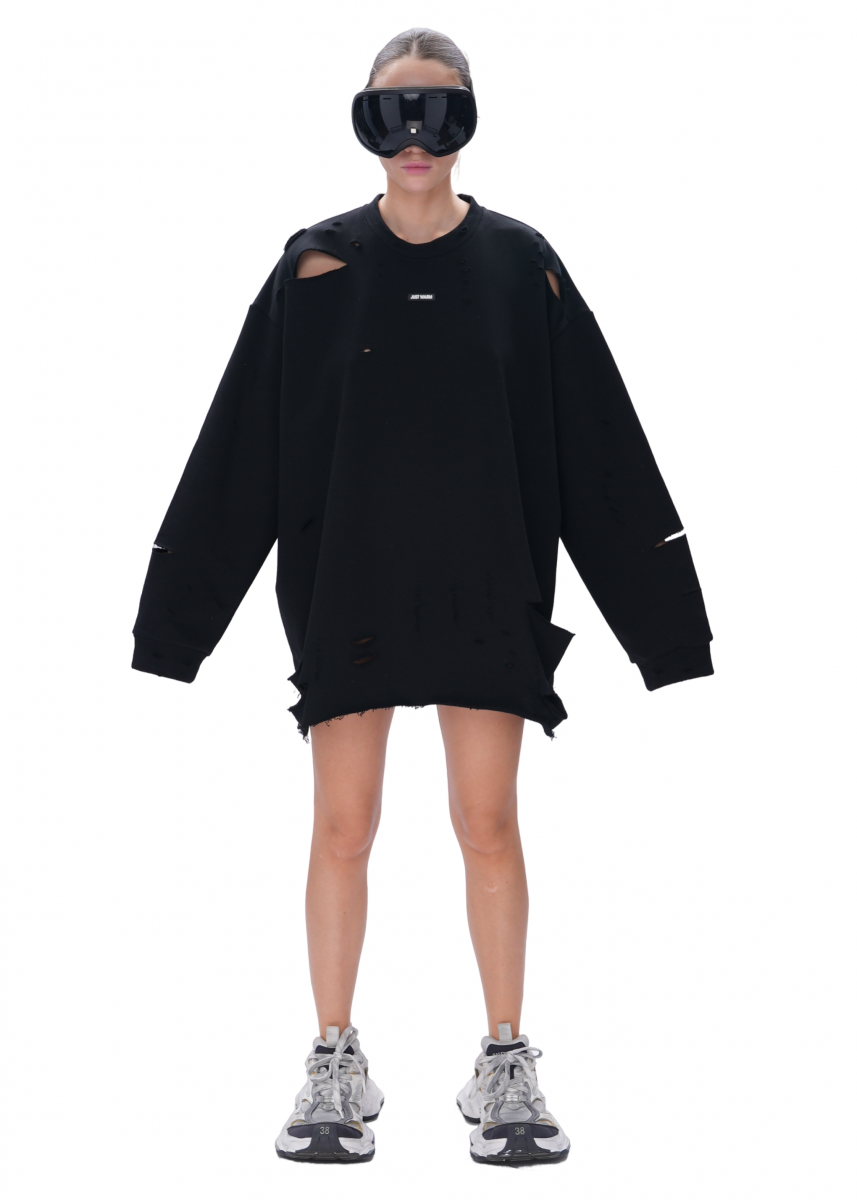 Cвитшот из премиального трикотажного полотна, с необработанным краем. Изделие имеет эффект потертостей, что делает его индивидуальным.