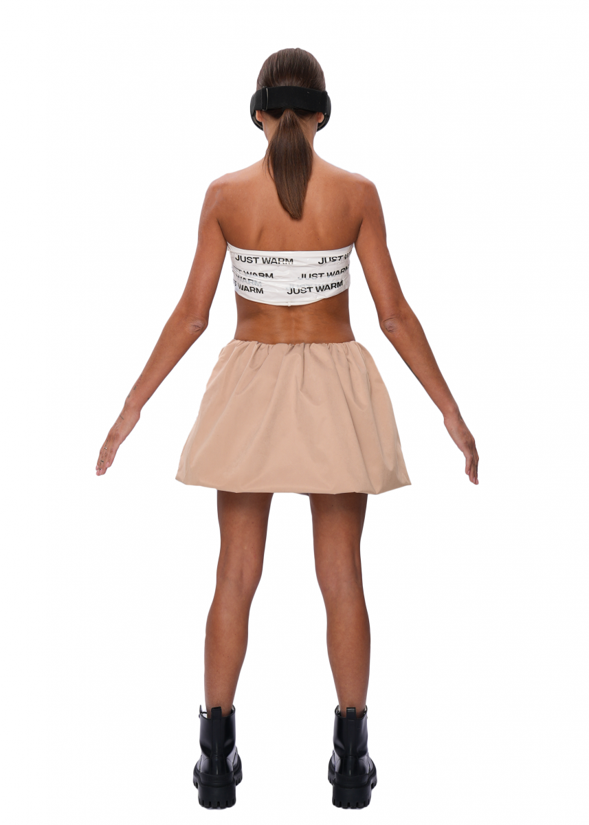 Пояс на эластичной резинке дополнен внутренним шнурком, который позволяет регулировать посадку и фиксировать юбку на комфортной высоте.